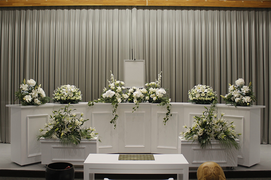 多くの会葬者でもゆとりのある広々とした空間を持ったホールです。